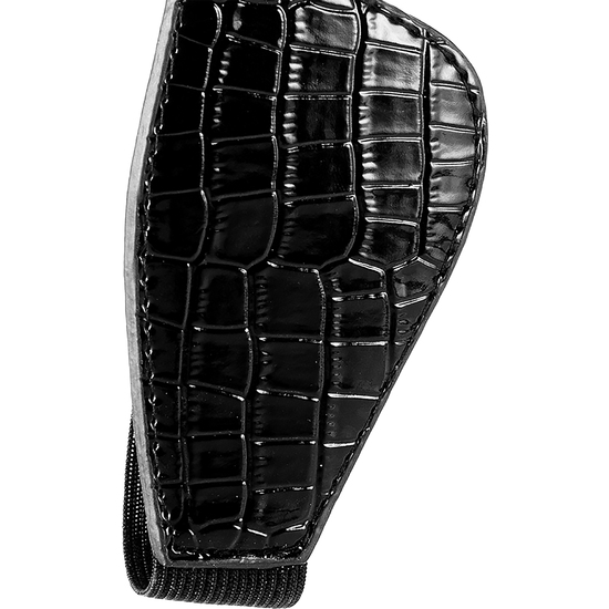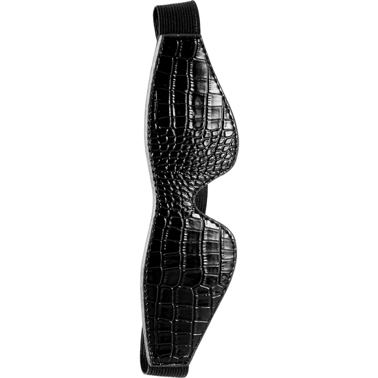 Esta máscara o venda tiene un diseño de cuero de cocodrilo negro brillante. Está forrado con neopreno suave y duradero, para una sesión de juego sensual y cómoda. La correa está hecha de material elástico para un buen ajuste alrededor de la cabeza. Un tamaño sirve para la mayoría.