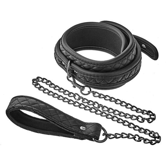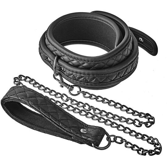 Este conjunto de collar y correa de la colección Blaze de productos de bondage tiene un diseño acolchado con puntada de diamante negro en cuero vegano, con hardware libre de níquel negro. Para mayor comodidad al usarlo, el collar está forrado con un neopreno suave y duradero. El collar con correa es una necesidad para todos los amantes del bondage y es popular entre aquellos que aman un poco de juego de roles en sus sesiones BDSM.Collar y correa de cuero vegano y metalForrado con neopreno acolchadoEl hardware negro es libre de níquelAjustable completamente con el sencillo cierre de cinturónConectado a una cadena negra extraíble