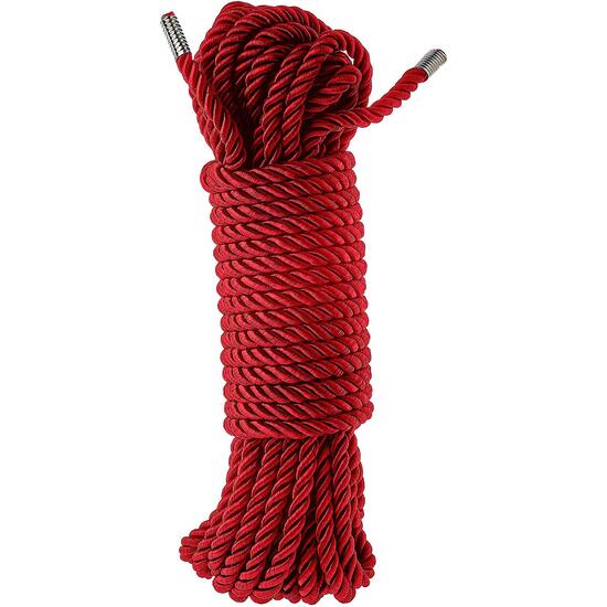 Cuerda de bondage roja súper suave con acabado sedoso, 10 metros de largo. Ambos extremos tienen un acabado anti-deshilachado de metal. Esta es una cuerda versátil para múltiples opciones de atado. Es ideal para aquellos nuevos en el juego de bondage estilo japonés, así como para aquellos más experimentados en Kinbaku o Shibari ataduras apretadas. Cuerda de bondage súper suave con acabado sedoso 10 metros Extremos anti-deshilachados