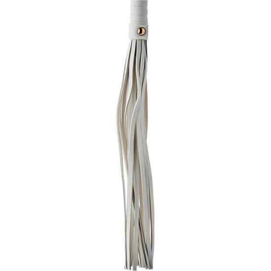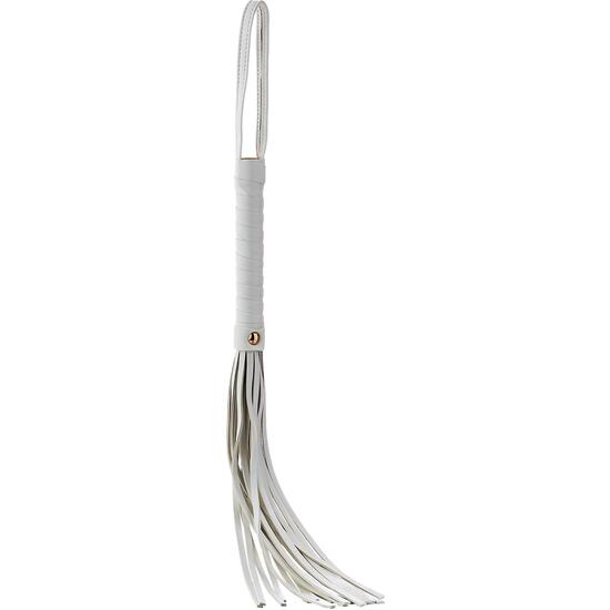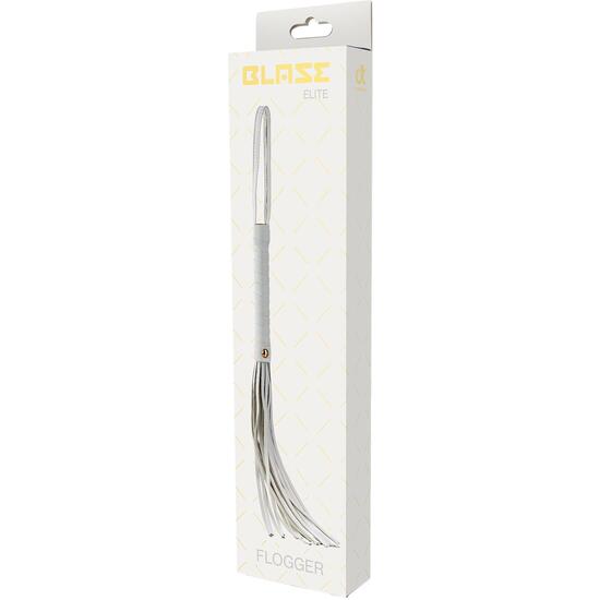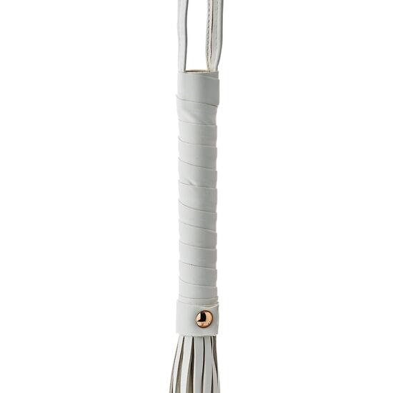 Flogger de la etiqueta Blaze Elite hecho de cuero artificial blanco con 30 cm de largo de cadenas de aspecto de cuero. El flogger tiene un mango fuerte y resistente de fácil agarre hecho del mismo material con una cómoda correa para la muñeca. Diseñado para satisfacer tus deseos más eróticos. Traza suavemente el cuerpo de tu amante para construir anticipación y construir hasta latigazos cortos y agudos para exceder la diversión a un placer impresionante. El material blanco hace que el flogger sea un accesorio elegante para cualquiera que ame el BDSM y los looks elegantes. Flogger con cadenas de aspecto de cueroMango fuerte y resistenteCon correa para la muñecaHecho de cuero artificial blancoLongitud de las correas 30 cm