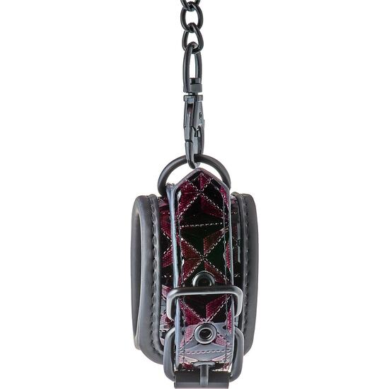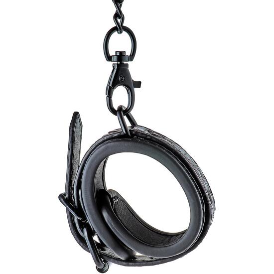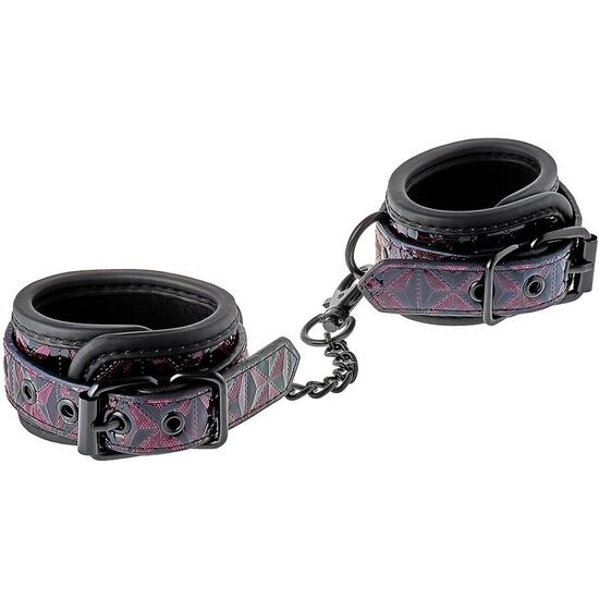 Un par de esposas estilosas hechas de material de aspecto de cuero con un diseño estampado negro y púrpura elegante y brillante. Tienen todos los hardware de color negro sin níquel y están forrados con un material de neopreno suave pero duradero para juegos sexy y cómodos. Las esposas para la muñeca se pueden ajustar completamente con los sencillos hebillas de estilo cinturón. Una cadena de 10 cm de largo mantiene las esposas juntas. La cadena es desmontable por un lado con un gancho mosquetón. Es posible conectar más cadenas o ganchos de cuerda o pesos adicionales. Esposas estilosasAjustables completamente a través de la sencilla hebilla de estilo cinturónMantenidas juntas por una cadena negra a la que puedes conectar fácilmente cuerda, ganchos o pesosEstas duraderas esposas cuentan con todos los hardware de color negro sin níquel y están forradas con un material de neopreno suave pero duradero para juegos sexy y cómodos.