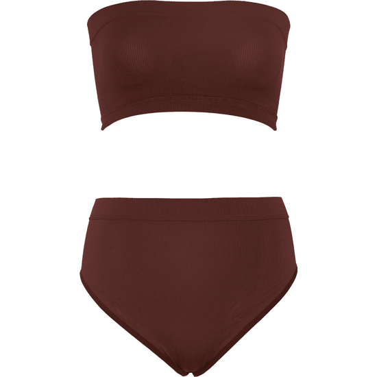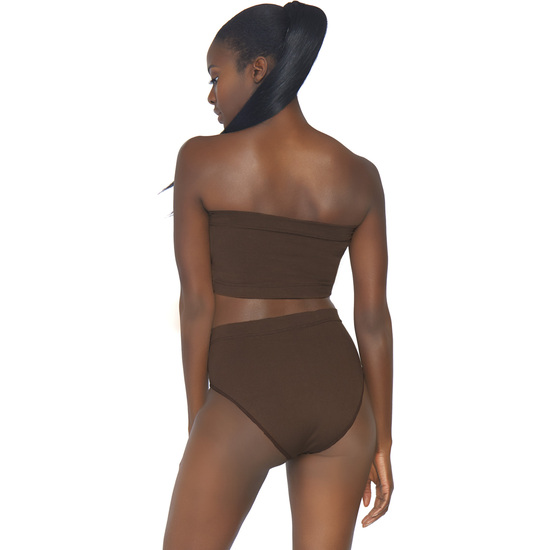 Conjunto de microfibra acanalada opaca sin costuras que incluye un top de banda y bragas de cintura alta.