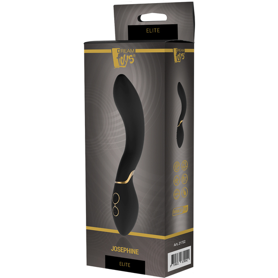 El vibrador Josephine de la colección Elite de Dream Toys es un vibrador negro con elegantes acentos dorados, una forma curvada y una cabeza bastante grande y flexible. El potente motor ofrece 7 patrones de vibración y 3 velocidades. El vibrador Josephine es recargable con el cable USB-pin incluido. Está hecho de silicona y ABS de grado alimenticio, es resistente al agua IPX7, seguro para el cuerpo, libre de ftalatos y libre de látex. El funcionamiento se puede realizar con 2 botones en la base del vibrador: el botón superior para encender / apagar el vibrador, el botón inferior para cambiar los programas de vibración. La colección Elite es negra con acentos dorados, con sutiles anillos dorados alrededor de los botones y un empaque a juego. Vibrador Josephine, flexible, con una gran cabeza1 Motor potente7 Patrones de vibración fuertes y 3 velocidadesRecargable, cable USB-pin incluidoHecho de suave silicona y ABS de grado alimenticioResistente al agua IPX7Dimensiones: longitud 20 cm, diámetro 3,6 cmHaga clic aquí para descargar el manual.