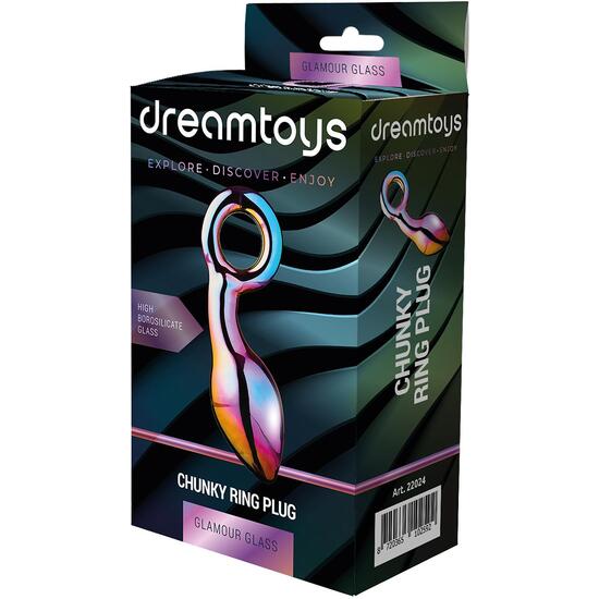 Glamour Glass es una gama de juguetes de vidrio de Dream Toys con colores de burbujas de jabón hipnotizantes. La gama cuenta con dildos, varitas y tapones y este maravilloso dildo. Este tapón anal tiene una forma grande y gruesa para una sensación completa. El mango en forma de bucle facilita la navegación del tapón y el suave tirón hacia atrás. Con su diámetro de 4,2 cm es bastante grande; será un tapón muy atractivo para los usuarios más experimentados de juguetes anales. Chunky Ring Plug Hecho de vidrio borosilicato libre de ftalatos y libre de látex Longitud 13 cm Diámetro 4,2 cm La hermosa y suave apariencia brillante es lo que todos los juguetes Glamour Glass tienen en común. Además de esa sensación especial que proporciona el vidrio y las posibilidades de juego de temperatura. Todas las grandes propiedades de los juguetes Glamour Glass de Dream Toys, la marca más extensa de Tonga BV. Verdaderamente versátiles y verdaderamente emocionantes, ¡con una apariencia glamorosa! Tonga combinó las grandes propiedades del vidrio borosilicato con la apariencia glamorosa de una superficie multicolor, brillante y suave, con formas estimulantes y con el elegante empaque de esta etiqueta, que creó verdaderos atractivos para cualquier tienda, con muchas grandes ventajas para comunicar a sus clientes. Vidrio borosilicato Cada uno de los juguetes Glamour Glass está hecho de vidrio borosilicato que es muy fuerte, no poroso, higiénico y seguro para el cuerpo