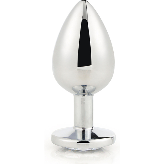 La colección Gleaming Love presenta este gran y brillante plug anal con piedra preciosa. Hecho de aluminio ligero y sin costuras, este juguete de placer es fácil de deslizar y la base ensanchada garantiza una sensación de seguridad mientras mantiene la joya cómodamente entre las nalgas. Este plug con joya está bellamente decorado con una delicada piedra preciosa redonda. Desde la punta hasta la base, el plug anal sin costuras presenta un brillo reluciente que se combina maravillosamente con el destello de la piedra preciosa correspondiente. La forma de bulbo ahusada del plug combina facilidad de uso con placer anal erótico. El plug Gleaming Love se puede calentar o enfriar en agua antes de usar para proporcionar sensaciones adicionales. Se incluye una bolsa de almacenamiento hecha de un suave terciopelo que se cierra con un cordón. Plug grande: longitud 9,5 cm diámetro 4,3 cm