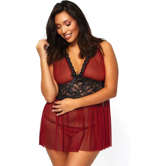 LEG AVENUE CONJUNTO PICARDÍAS BURDEOS BABYDOLL CON TANGA