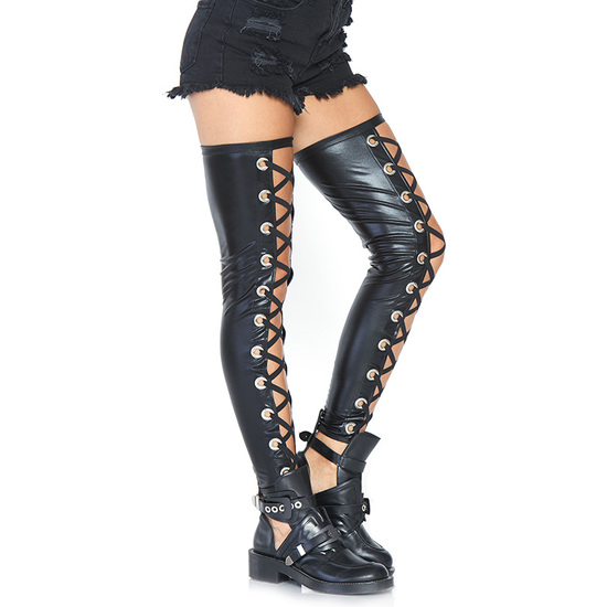 WETLOOK FOOTLESS LACE UP THIGH
