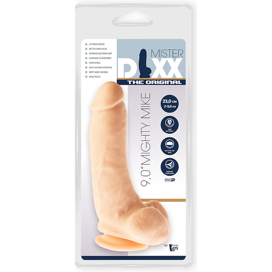 Mighty Mike de la colección Mr Dixx – The Original es un consolador suave y flexible, hecho de PVC antibacteriano, sin olor y seguro para el cuerpo. Mike se siente como la cosa real y tiene una fuerte ventosa que permite a los usuarios disfrutar de una variedad de posibilidades para todo tipo de placer, solo o con un compañero. La base de ventosa asegura que Mike se pegará a cualquier superficie lisa y plana, ya sea el suelo, la cabecera de la cama o la pared de la ducha. Gracias a la ventosa, el consolador también se puede usar en un arnés, asegurándose de que se mantenga firmemente en su lugar cuando se coloque a través del anillo O, para que el usuario pueda disfrutar de este Mr Dixx sin preocupaciones. Mighty Mike es uno de los consoladores más grandes de la colección. Tiene un eje velludo, una modesta cabeza de pene y es grueso con su ancho de 5 cm. Mighty Mike asegurará que sientas su presencia para ayudarte a alcanzar orgasmos intensos. Consolador flexible con sensación realVentosa fuerteCompatible con arnésHecho de PVC antibacterianoLibre de ftalatos y látex, sin olor, seguro para el cuerpoLongitud 23 cmAncho 5 cm