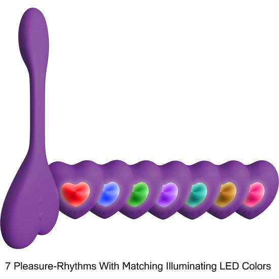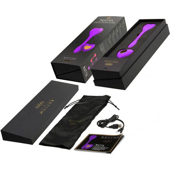 Natya es completamente recargable, con potentes vibraciones duales con 7 ritmos diferentes con colores LED de iluminación.