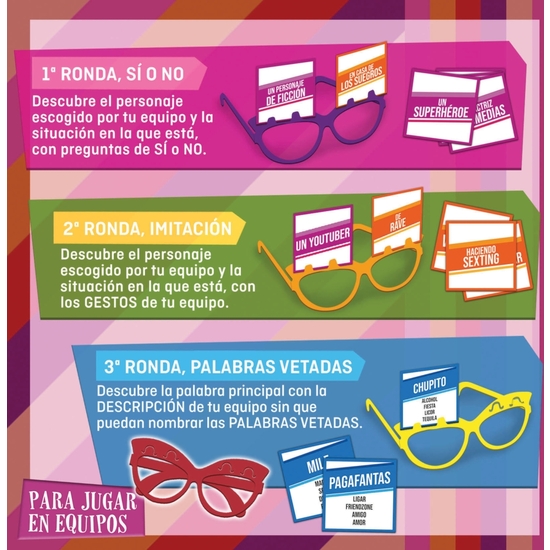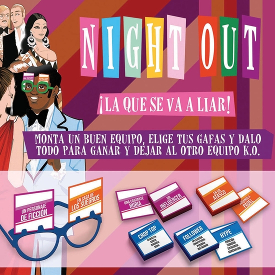 NIGHT OUT es un divertido PARTY GAME con 3 dinámicas diferentes para pasar un buen rato con tus amigos. Adivinar el personaje y la acción mediante 2 dinámicas diferentes preguntas si o no y mímica y la tercera está basada en la dinámica de adivinar palabras sin decir las 4 palabras prohibidas. Viene con 4 divertidas gafas. Instrucciones en Español.