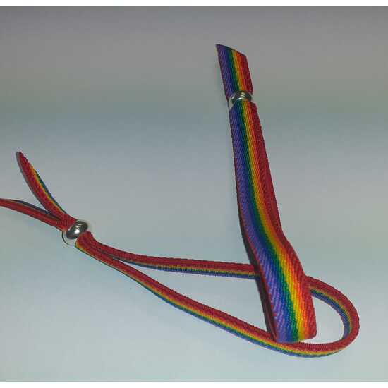 Pulsera de GOMA LUJO DE CHICA AJUSTABLE CON UNA BOLITA PLATEADA con los colores emblemáticos de la bandera del orgullo , muy ponible y llamativa por los colores que son muy fuerte y destacan mucho en la muñeca.