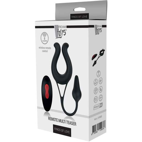 Este estimulador flexible es maravilloso para parejas que desean disfrutar de vibraciones juntos durante el coito, pero también se puede usar solo. El estimulador en forma de herradura contiene 2 motores y un plug anal está conectado a él con una cuerda elástica. Los 9 diferentes ritmos en ambos brazos del estimulador se pueden controlar fácilmente con un solo botón. Es posible usar este estimulador en la ducha o bañera porque es resistente al agua. Para mayor comodidad, viene con un control remoto inalámbrico para controlar las vibraciones y un cable USB magnético para recargar el estimulador y el control remoto. El plug anal tiene una punta flexible. Operación: mantenga presionado el botón para iniciar / detener el vibrador. Presione brevemente para cambiar los ritmos de vibración. El control remoto también se puede recargar. Se puede usar cuando el estimulador está encendido y tiene un botón de encendido y un botón para cambiar las vibraciones. Multi Teaser para uso en pareja o soloCon plug analHecho de silicona y ABS9 patrones de vibraciónFácil operación con un solo botónControl remotoResistente al agua IPX7RecargableCable USB magnético incluidoTiempo de carga 1,5 horasTiempo de uso 1,5 horasRuido <40 dbLongitud 23,0 cmAncho 6,9 cmDiámetro 2,9 cm