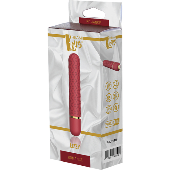Los productos Romance tienen un color rojo rubí distintivo y una apariencia de lujo. Con un rendimiento de alta calidad como puede esperar de los lujosos juguetes de Dream. Al igual que los otros juguetes Romance, el vibrador de bala Lizzy es elegante y romántico por fuera y lleno de tecnología por dentro. El vibrador de bala de tamaño de bolsillo Lizzy en rojo burdeos tiene una textura en forma de diamante en el suave silicona de grado alimenticio del eje rígido. Ofrece 3 velocidades y 7 ritmos de pasión vibrante, mientras que es completamente resistente al agua y fácilmente recargable con USB. El tamaño pequeño y la punta redondeada de Lizzy lo convierten en un gran juguete para la estimulación de todas las zonas erógenas y especialmente para la estimulación del clítoris. El funcionamiento es fácil con un solo botón en la parte inferior. Vibrador de balaTamaño de bolsilloEje rígido con textura de diamante3 velocidades y 7 patrones de pasión vibranteFácil botón de un solo usoRecargable con cable USB incluidoResistente al aguaHaga clic aquí para descargar el manual