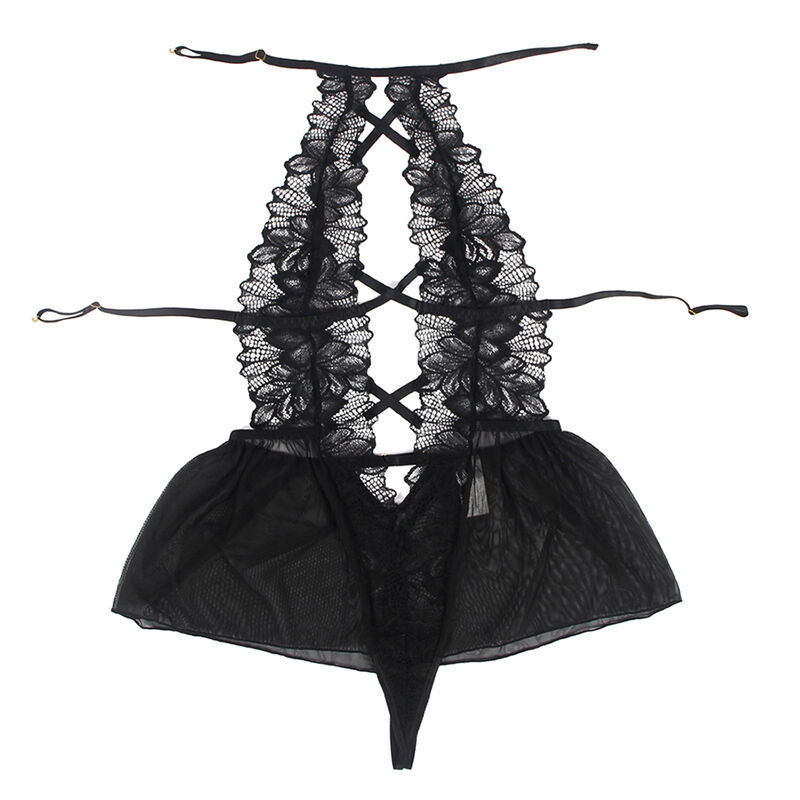SUBBLIME – TEDDY CUELLO HALTER ESPALDA DESCUBIERTA ENCAJE NEGRO S/M