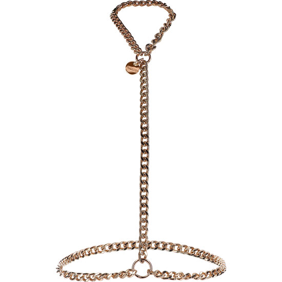 Vístete menos para impresionar con el TABOOM Dona Statement Harness. El arnés es fuerte, hecho de metal rosa lujoso y perfecto para una aventura picante. O llevarlo como un accesorio sexy y elegante. Deja que se deslice sobre tus curvas y exige la atención que mereces. Perfecto para usar sobre ropa de noche o sobre la piel desnuda para una seducción sexy.